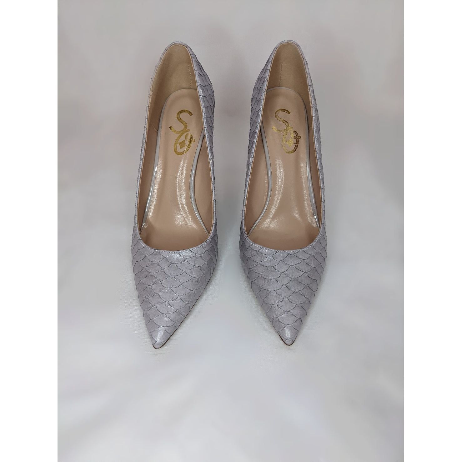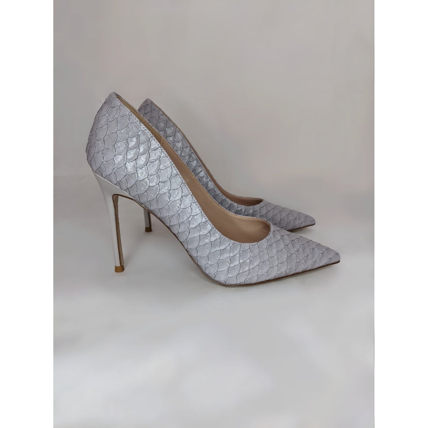 Skyla Grey sits on a 4" slim straight heel. The incredible detail of this pale grey, textured material adds impact to this stunning shoe, featuring an elegant pointed toe making it perfect for your formal occasions.